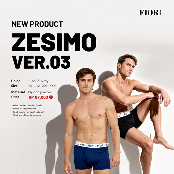 ZESIMO Ver. 03 adalah celana dalam premium untuk pria dengan desain modern, simpel, dan sangat nyaman digunakan sehari-hari. Dibuat dari bahan Nylon Spandex yang lembut, elastis, dan breathable, produk ini memberikan kenyamanan maksimal tanpa mengorbankan tampilan.